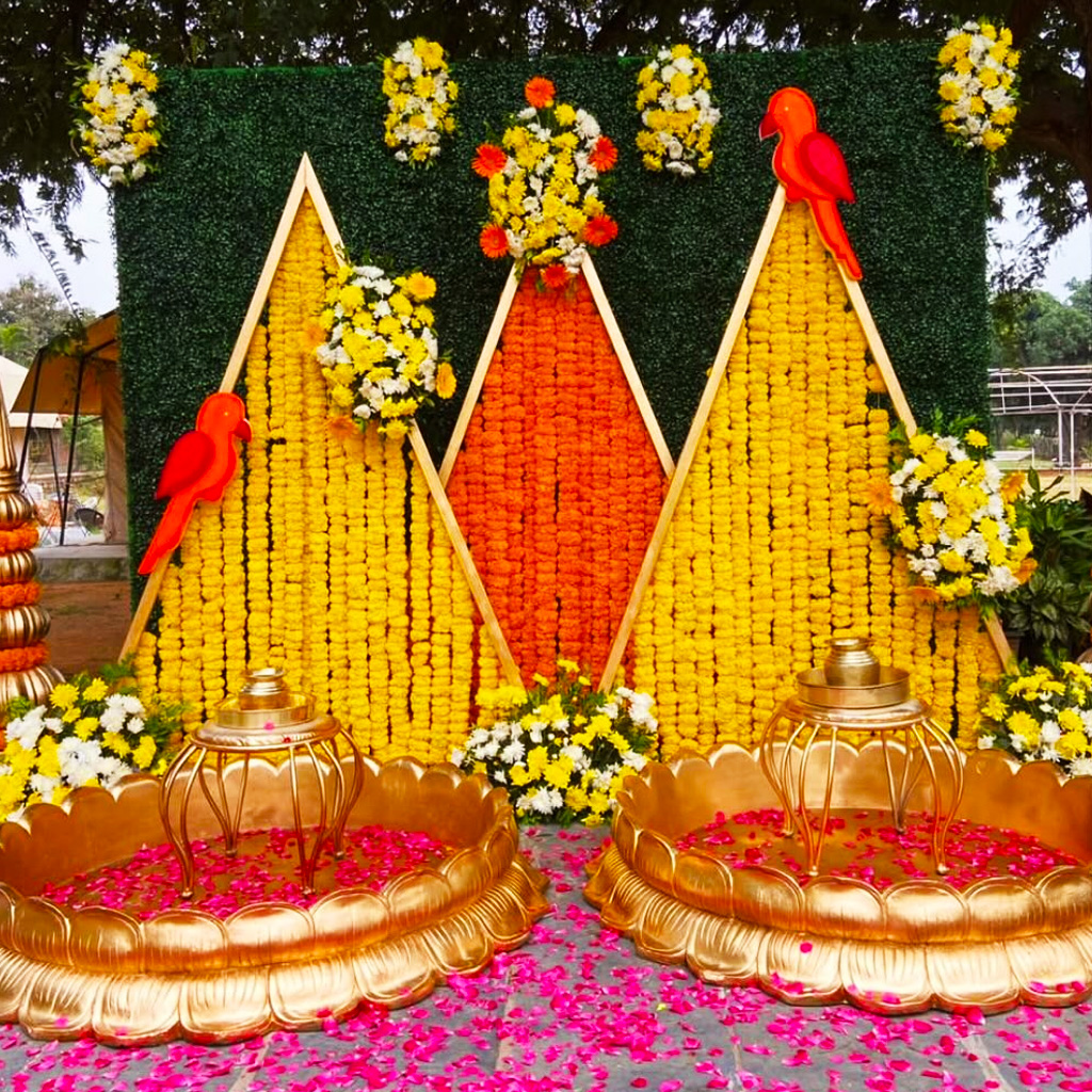 Fresh Marigold Haldi Decoration